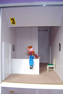 Below is a ventriloquist head and then a mobile puppet show showing health and safety. During refurbishment safety principles were updated.